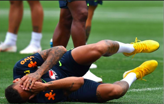 Non contento delle simulazioni messe in pratica nelle varie partite disputate fino ad adesso, specialmente nell’ultima contro il Messico, dove il giocatore del Psg ha passato il suo tempo a terra per ben 14 minuti, Neymar finge pure in allenamento per mettere in pratica la sua tattica insolita. Intanto i compagni di squadra se la ridono e si godono il momento prima di scendere in campo contro il Belgio.