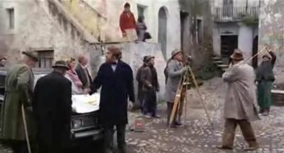 La scena di quando i 4 amici arrivano nel paesino (Calcata Vecchia vicino Viterbo) ed iniziano a prendere le misure e scrivono sui muri delle case da abbattere per far passare un’autostrada (delle Ginestre) ed una tangenziale (Est) tutto questo su ordine della regione? Con la popolazione incredula e spaventata.