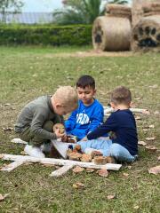 Il percorso è stato interamente organizzato negli spazi del Circolo Ippico La Bruco di Mariano Fazio, insieme al co-organizzatore Rossano Bruno, trasformati per l’occasione in un vero villaggio tematico dedicato all’autunno. Lo scenario, preparato nei minimi dettagli, ha permesso ai bambini di muoversi in un ambiente pensato per loro: balle di fieno in forme creative, sagome decorate, spazi dedicati al contatto con gli animali e alle attività di movimento.