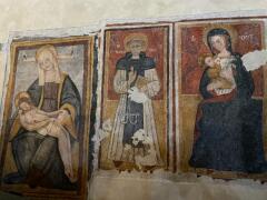 Sulle pareti della piccola Chiesa sono stati rinvenuti dei frammenti di affreschi databili tra il XIV ed il XV secolo, come le Tre Madonne in trono con Bambino, una Pietà, una Imago Pietatis e San Leonardo, celati da una scialbatura a calce. Il primo a intuire il valore di questo patrimonio nascosto fu Don Leone Boniface, che avviò l’attenzione su ciò che per secoli era rimasto invisibile. Da quella intuizione è nato un percorso di studio, cura e restituzione alla comunità.