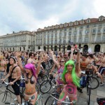Torino – Seminudi in sella alle bici, a centinaia hanno attraversato oggi il centro di Torino nella giornata mondiale del ‘World Nake Bike Pride’, promossa in molte cità per protestare contro la dipendenza dal petrolio.