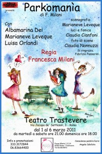 “PARKOMANIA” testo e regia di Francesca Milani, 1-5 marzo ore 21, 6 marzo ore 18, con Albamarina Dei, Luisa Orlandi, Marianeve Leveque