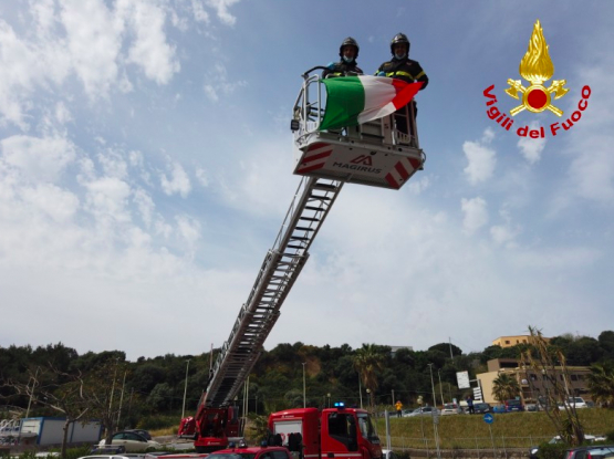 Molti i mezzi della centrale arrivati a contorno dell’ospedale, dalla APS (Autopompa Serbatoio) fino alla AS (Auto Scala) alla quale è stata messa sulla grata del cestello la bandiera tricolore.