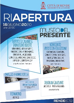 La cultura esce dalla quarantena e riapre le porte del Museo del Presente a Rende: giovedì 16 giugno alle 18,00 si riparte dopo la chiusura dei mesi scorsi del polo culturale dell’area urbana, teatro di importanti iniziative artistiche.