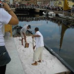 Oggi come allora, i salinari del Gruppo Culturale Civiltà Salinara giungono nel tratto di canale antistante i magazzeni dove scaricano dall’antica imbarcazione a terra circa 100 quintali di sale servendosi degli antichi strumenti.