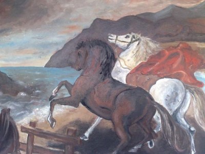 Roma - olio su tela 50 x 70 Le mont Saint Michel- olio su tela 40 x 50 il carretto Corsica Portovecchio - olio su tela 80 x 120 Dark Niki - olio su tela 30 x 40 omaggio a De Chirico olio su tela 50 x 70