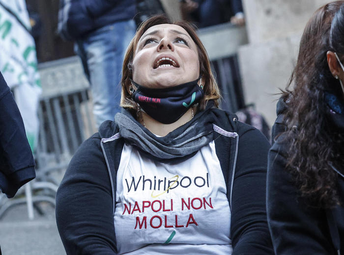 Whirlpool workers during the demonstration against the redundancies and the closure of the Naples plant, in Rome, Italy, 14 October 2021. ANSA/GIUSEPPE LAMI