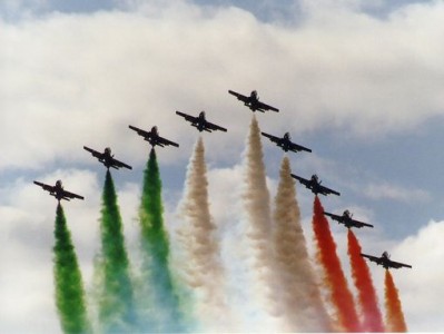 Dopo una serie di batti e ribatti, smentite e conferme, la Pan ovvero la Pattuglia Acrobatica Nazionale, meglio conosciuta come le Frecce Tricolori ha potuto esibirsi nei cieli della Libia. Gheddafi con il naso all’insù ha potuto vedere le acrobazie e le evoluzioni dei piloti italiani, fiore all’occhiello di tutti i militari italiani per l’audacia, preparazione e professionalità.