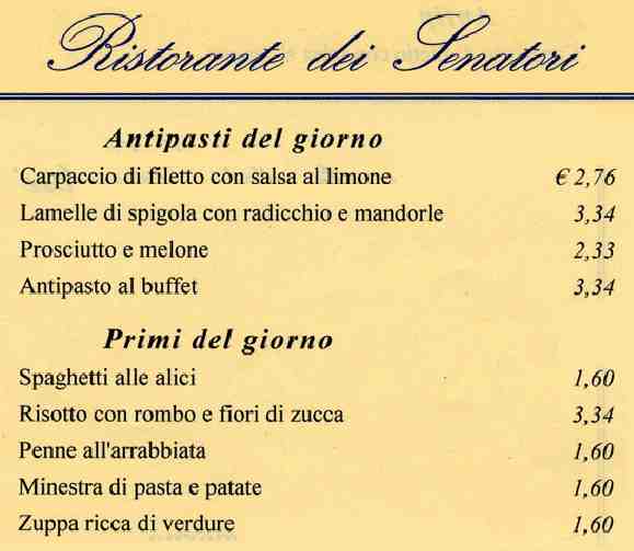 Ecco da dove dovrebbe iniziare il ministro Tremonti a tagliare i costi della politica: dal menĂ¹ dei senatori. Ecco il menĂ¹ del Senato, ed i relativi prezzi.