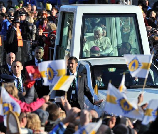 (23092011_SC11)- Pope Benedict XVI drives through the faithfull in his Papamobil prior to a mass in front of the cathedral in Erfurt, Germany, 24 September 2011. The head of the Roman Catholic Church is visiting Germany from 22-25 September 2011. Foto: Hendrik Schmidt dpa/lth +++(c) dpa – Bildfunk+++ -ALLIANCE-(TM News – Infophoto) Citazione obbligatoria (TM News – Infophoto) – Erfurt 2011-09-24 (23092011_SC11)- Pope Benedict XVI drives through the faithfull in his Papamobil prior to a mass in front of the cathedral in Erfurt, Germany, 24 September 2011. The head of the Roman Catholic Church is visiting Germany from 22-25 September 2011. Foto: Hendrik Schmidt dpa/lth +++(c) dpa – Bildfunk+++ -ALLIANCE-(TM News – Infophoto) Citazione obbligatoria (TM News – Infophoto) ALLIANCE – (DPA) VISITA PASTORALE DI PAPA BENEDETTO XVI IN GERMANIA Kirchen,ESTERO,VISITA PASTORALE DI PAPA BENEDETTO XVI IN GERMANIA,PAPA BENEDETTO XVI ,JOSEPH RATZINGER,PAPAGERMANIA011,RELIGIONE CATTOLICA,ESTERI,Religion,Religion And Belief,Papst Benedikt XVI,Pope Bendict XVI – fotografo: Alliance / infophoto