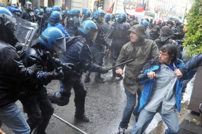 Momenti di tensione tra manifestanti e forze dell’ordine durante il corteo del primo maggio a Torino. Secondo quanto ricostruito dalla polizia, circa 200 antagonisti arrivati all’altezza di via Cesare Battisti hanno accelerato, cercando di deviare il percorso autorizzato per il corteo.