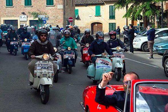 Un giro tra le bellezze della Valdichiana in sella ad una Vespa. L’associazione La Chianina di Marciano della Chiana conferma il proprio impegno nella valorizzazione del territorio e, in attesa dell’omonima ciclostorica di giugno, presenta la terza edizione de “La Chianina in Vespa”. L’appuntamento è fissato per domenica 20 maggio e riunirà tanti appassionati di tutto il centro Italia per accompagnarli tra i borghi e i paesaggi più suggestivi della vallata, con un percorso su strade asfaltate che conoscerà anche alcune tappe dedicate alla degustazione di prodotti tipici locali. L’unico requisito per partecipare, ovviamente, è il possesso di una Vespa che diventerà il mezzo per una giornata in movimento in cui scoprire la Valdichiana e stare in compagnia, potendo così vivere una manifestazione che nel 2017 ha registrato la presenza di quasi duecento iscritti dalla Toscana, dall’Umbria, dal Lazio, dall’Emilia Romagna e dalle Marche.