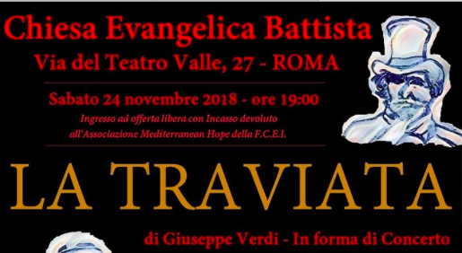 Sabato alle 18:00, presso la prestigiosa Chiesa Battista di via del Teatro Valle, in Roma, appuntamento imperdibile con “la Traviata”l’inossidabile Opera di Giuseppe Verdi.