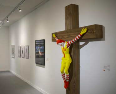 La scultura “McJesus” di Leinonen ha fatto andare su tutte le furie la comunità araba cristiana di Haifa, Israele, che l’ha intesa come un insulto alla propria religione. La scorsa settimana, esponenti della comunità araba cristiana hanno protestato fuori dal museo per la rimozione del crocifisso su cui è inchiodato Ronald McDonald.