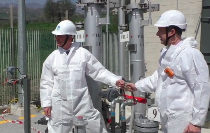 In questa centralina della Snam viene introdotto idrogeno, che si miscela al metano distribuito ogni giorno nella rete locale. Per un mese viene realizzata e distribuita una miscela al 5% di idrogeno, che ha enormi vantaggi rispetto alle fonti rinnovabili come sole e vento, solitamente non programmabili.