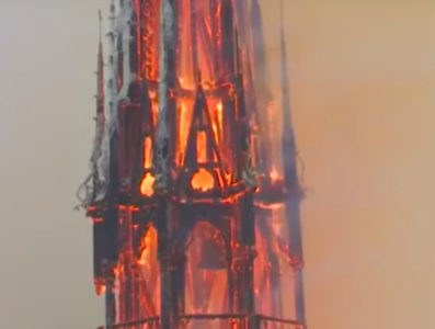 La rimozione delle sedici statue dalla guglia di Notre-Dame, che decoravano, aveva dato luogo, giovedì scorso, ad una spettacolare operazione di sollevamento nel cielo di Parigi.