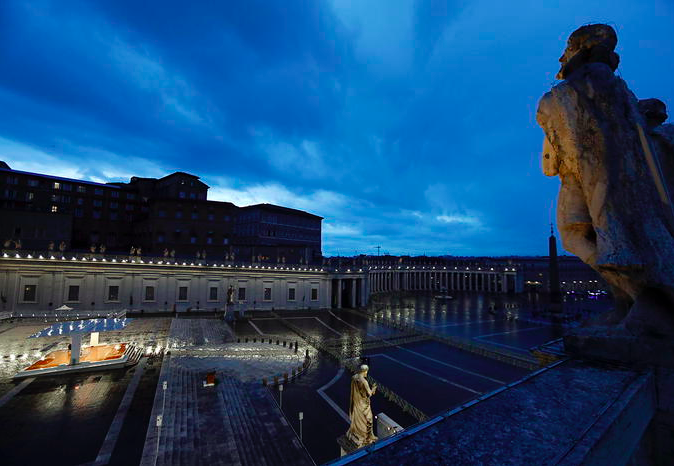 Piazza San Pietro, simbolo del Vaticano, simbolo di Roma, centro del mondo, mai come oggi, mai come in questi tempi. Esiste solo il silenzio e il suono delle campane e della speranza in questo momento di oscurità . Il papa benedice i quattro punti cardinali e l’unico suono percepibile insieme a quello delle campane è quello delle sirene delle ambulanze che fanno avanti e indietro, mai impegnate come oggi.