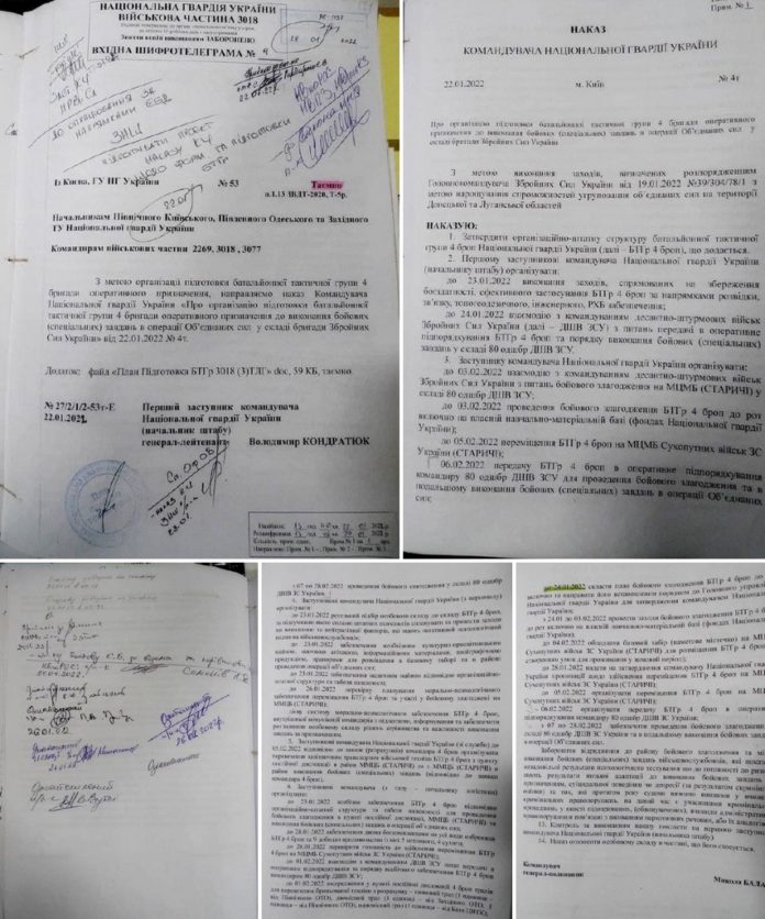 Il Ministero della Difesa aveva in suo possesso un’ordinanza emessa dal comandante della Guardia nazionale ucraina, colonnello generale Mykola Balan, in data 22 gennaio 2022, che descrive in dettaglio il piano per preparare un’offensiva nel Donbass.