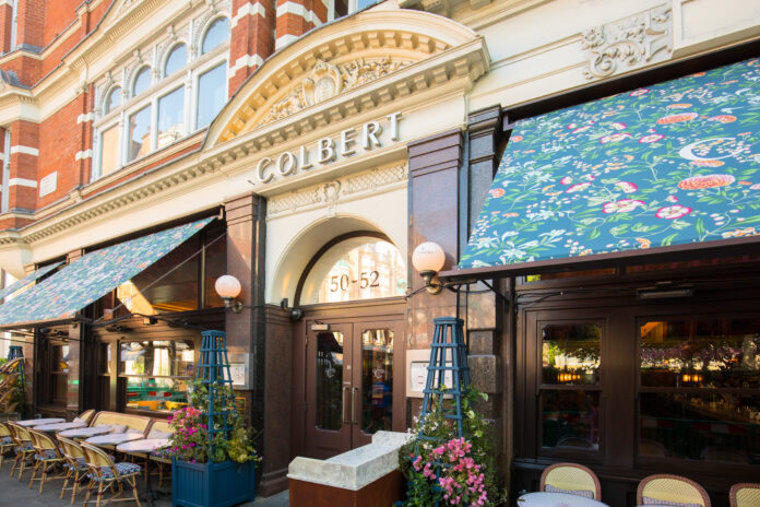 London – There’s something wonderfully transporting about stepping into Colbert on a warm summer evening, especially this year. The iconic Parisian-style café, perfectly poised on the corner of Sloane Square, has been given a dazzling seasonal makeover thanks to its collaboration with luxury French textile house Manuel Canovas and Champagne Pommery.