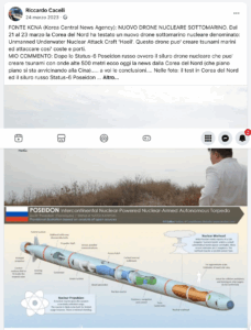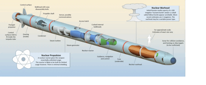 Citato da Interfax, ha dichiarato che “non esiste al mondo niente di paragonabile” al Poseidon “in termini di velocità e profondità” e che “non c’è modo di intercettarlo. Per la prima volta siamo riusciti non solo a lanciarlo da un sottomarino utilizzando il suo motore di spinta, ma anche ad avviare il reattore nucleare con cui l’apparato ha viaggiato per un certo periodo di tempo.”