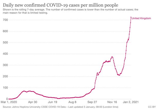 Londra – Per far fronte alla nuova impennata esponenziale di casi di Covid registrata in tutto il Regno e alimentata dalle nuove varianti, il Primo Ministro Boris Johnson ha annunciato questa sera in un discorso televisivo al Paese un terzo lockdown nazionale esteso a tutta l’Inghilterra.