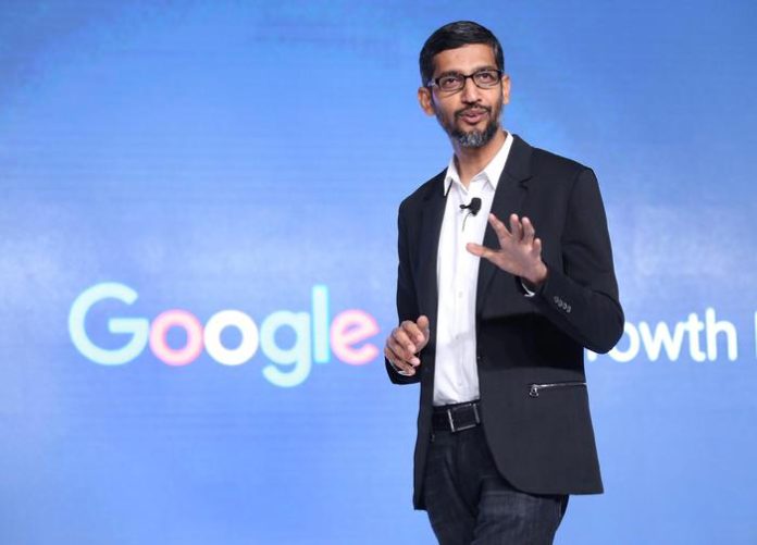 epa05697120 Google Chief Executive Officer (CEO), Sundar Pichai speaks during an event organized by Google India in New Delhi, India, 04 January 2017. According to a press release, in presence of Google CEO Sundar Pichai, Google India announced the launch of Digital Unlocked, training program to empower thousands of Indian Small and Medium Businesses (SMBs) with essential digital skills that will enable them to get online and start using the power of the internet to grow their business. EPA/RAJAT GUPTA
