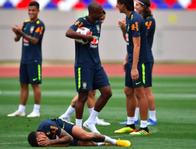 Non contento delle simulazioni messe in pratica nelle varie partite disputate fino ad adesso, specialmente nell’ultima contro il Messico, dove il giocatore del Psg ha passato il suo tempo a terra per ben 14 minuti, Neymar finge pure in allenamento per mettere in pratica la sua tattica insolita. Intanto i compagni di squadra se la ridono e si godono il momento prima di scendere in campo contro il Belgio.