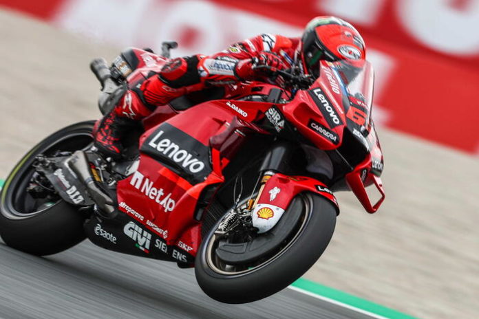 Francesco Bagnaia of Italy of the Ducati Lenovo Team in action during the MotoGP race of the Motorcycling Grand Prix of the Netherlands at the TT circuit of Assen, Netherlands, 26 June 2022. ANSA/Vincent Jannink